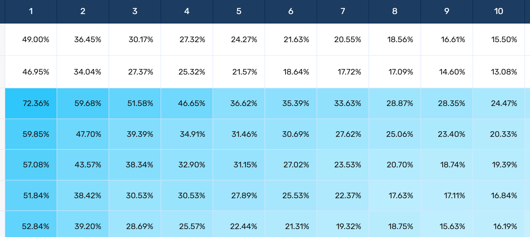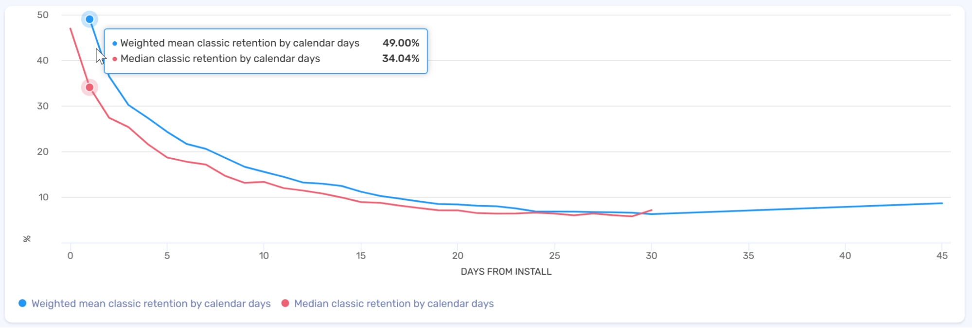 As an illustration, here’s a real retention graph of a typical average project in soft launch. These figures are representative of most well-assembled projects.