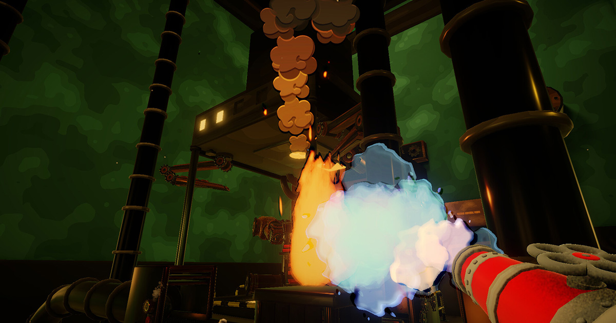 An engineer simulator at a steampunk factory. Mechanisms constantly break down, and the hero must repair them as quickly as possible.