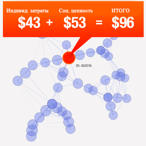 The true social value is calculated by adding the user’s individual costs (time and/or funds) and the costs that his friends have made following his example. We get a simple equation: