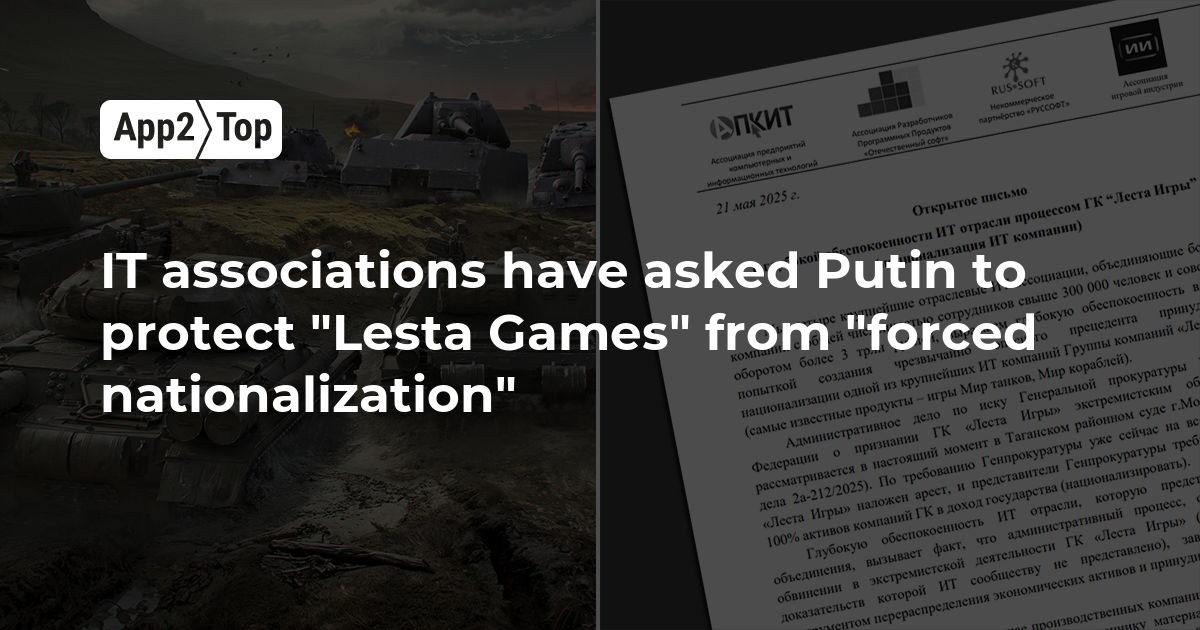 In their letter, the associations noted that although the accusation is unproven, three Russian legal entities of the developers of the games "World of Tanks" and "World of Warships" have already been seized. Additionally, the Russian Prosecutor General's Office has demanded to transfer the entire "Lesta Games" to the state.