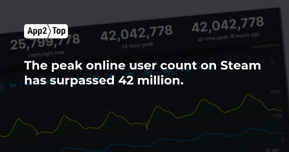 The year 2026 has already marked a new online record for Steam. According to the SteamDB service, on the evening of January 11, there were 42,042,778 people on the platform simultaneously.