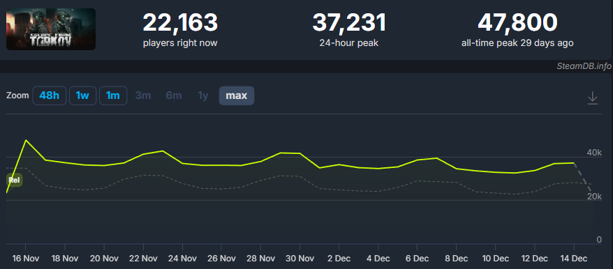 Exactly one month ago—on November 15, 2025—Escape from Tarkov had its full release. In light of this event, we decided to turn to VG Insights' data to examine the extraction shooter's performance on Steam.